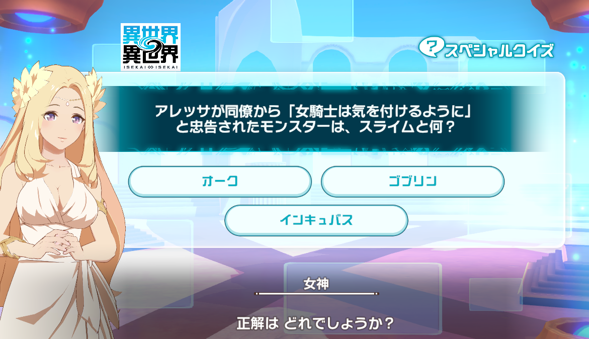 - ❤️ いせいせの女神は何を司る女神?異世界∞異世界クイズ