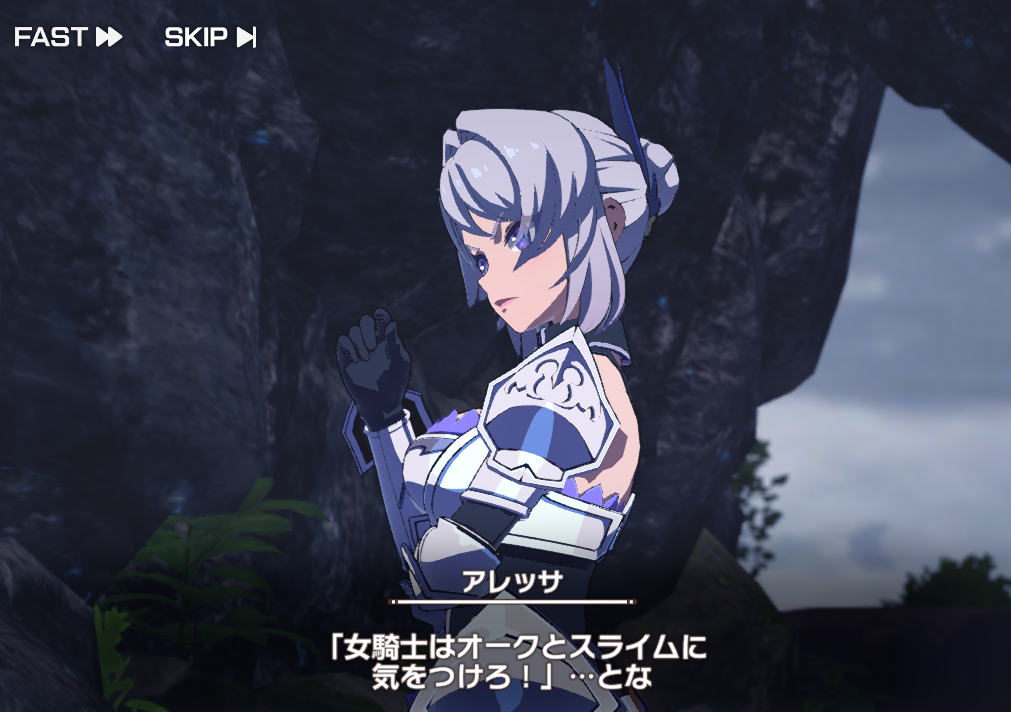 「くっころ」とは、ライトノベルやアニメなどで使われる俗語で「くっ、殺せ!」というセリフを放つ、強気だが従順なヒロイン(特に女騎士)のこと。今後のアレッサに期待したい!!