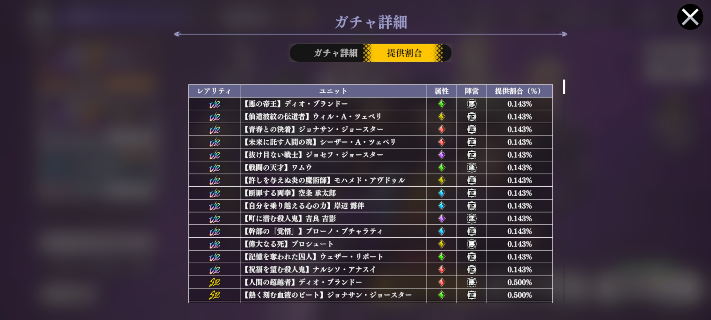 このオラドラガチャでも空条承太郎などのURユニットは排出されます。