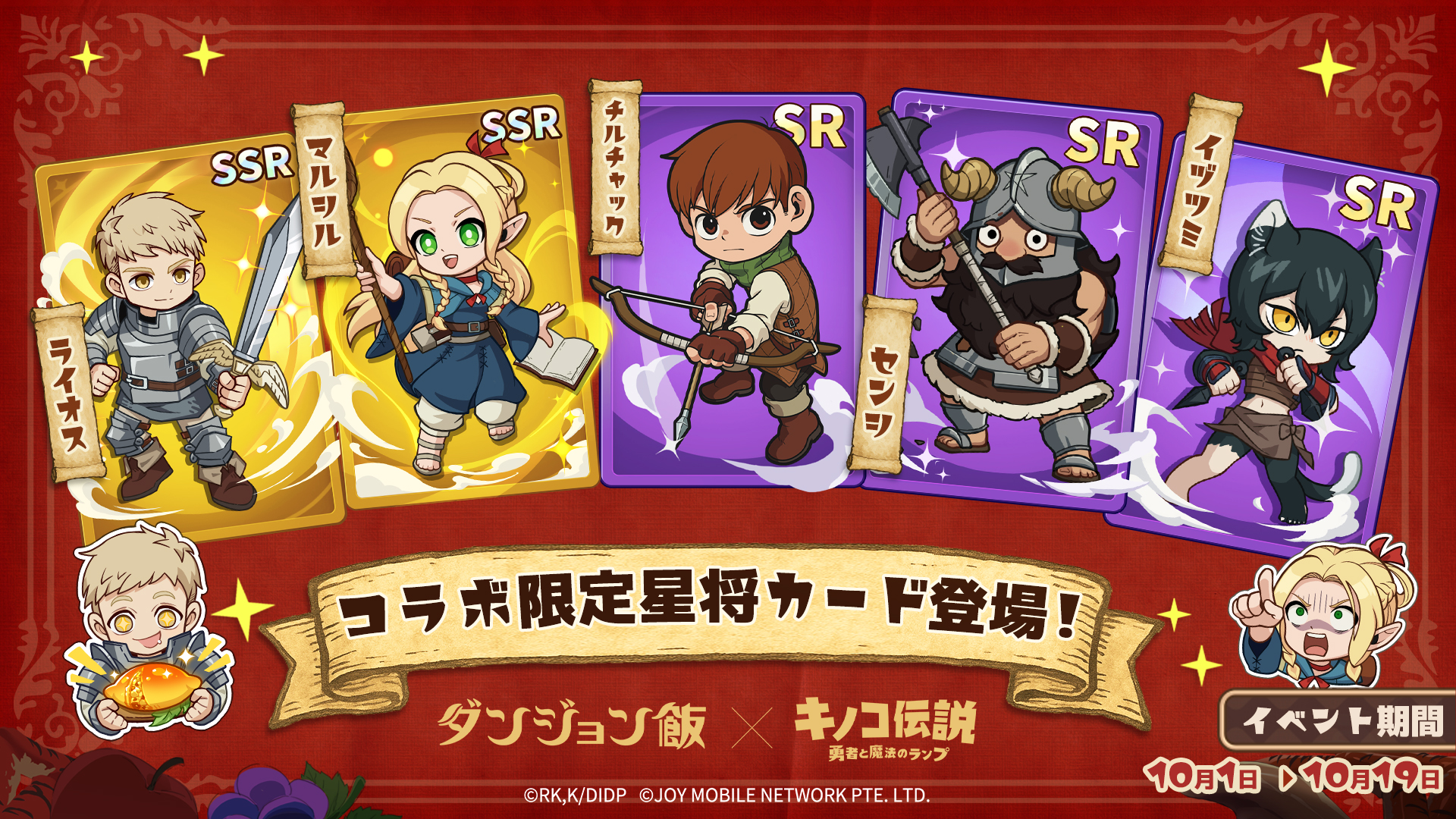 - ✨️ キノコ伝説×ダンジョン飯コラボイベント!スキンマルシル 背飾り大麦の雑炊 騎乗レッドドラゴン