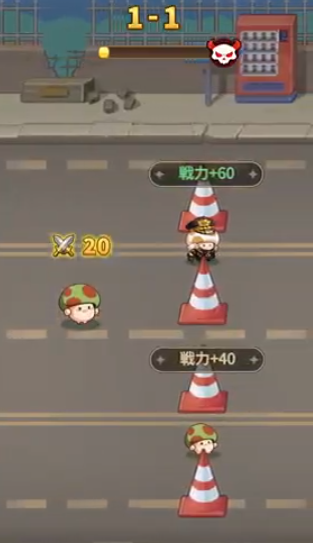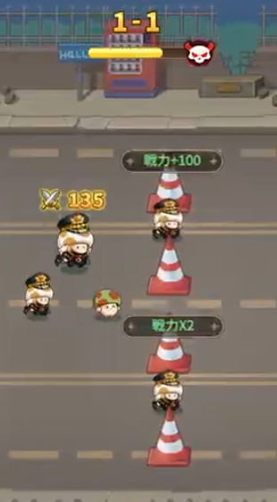 キノコの戦力が敵の戦力よりも高いと先へ進めます。ランプがある場所まで進むとステージクリア。