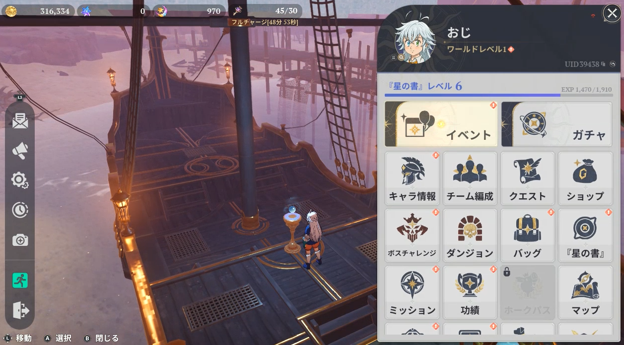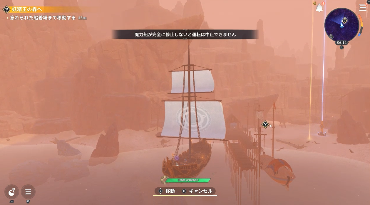 ナナオリ 妖精王の森へ「忘れられた船着場まで移動する」で船が動かせる!すげーーーー!となっていたら船が止まらん。どうすんだよおい…