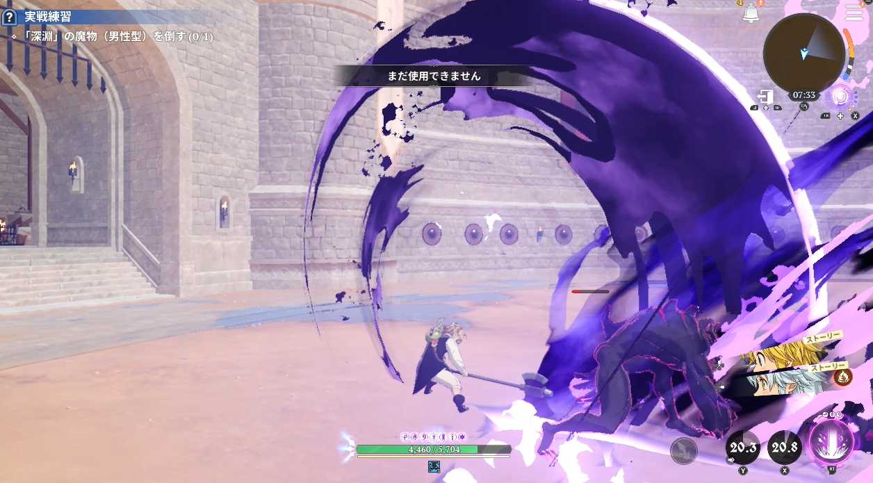ナナオリのメリオダス体験イベント(斧)で苦戦。「メリオダス(斧)魔気候下の使い方を学ぶ」で2番目の特殊スキルが終わらない。