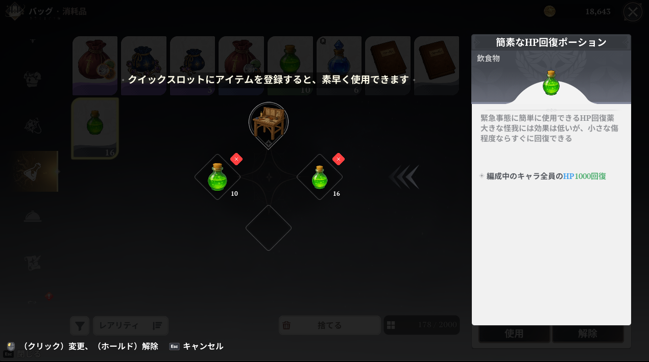 そろそろメインクエストでもクイックスロットにポーションをセットしておかないとね。