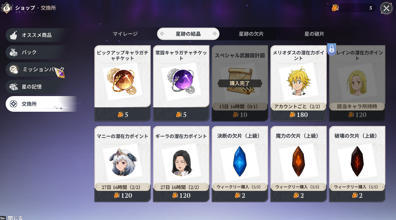 交換所でメリオダスの潜在力ポイントが2つ交換できます。これは1凸できていればいずれは4凸いけるのでは?