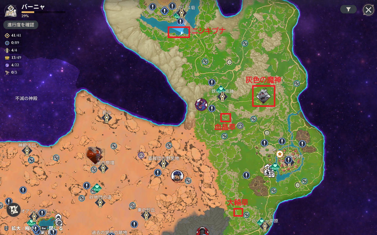 | フィールドボス:バナクローを倒す | 強化石(上級)×3 精錬石(上級)×3 |