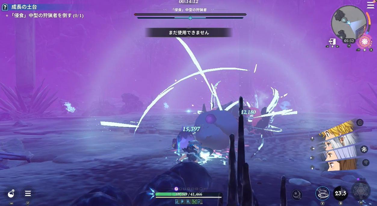 とにかく殴る。マーニ(長剣)を使用していて殴ればスキルが使用可能になるのでとにかく殴る。このあたりは育成しているキャラで違うでしょう。12秒残して何とかクリア。育成コンテンツでなんでこんな時間シビアなんだよ。