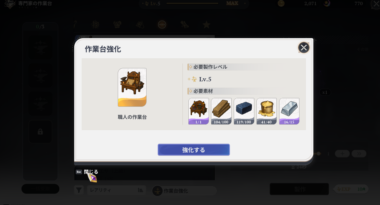 職人の作業台へ強化!終わったあああああああああああああああ!
