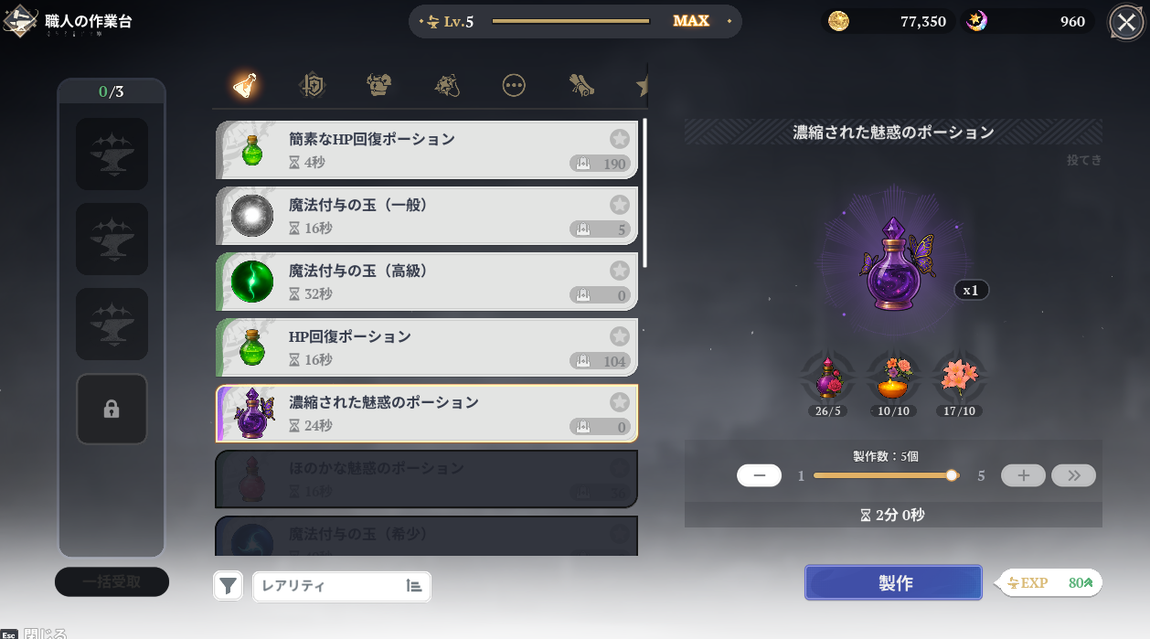 - ナナオリ濃縮された魅惑のポーションを作成する【七つの大罪Origin】