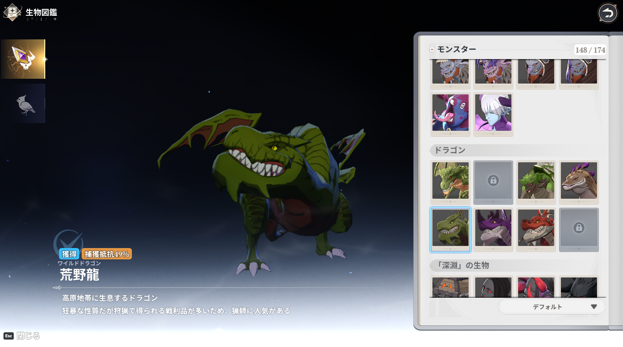 今回狙うのは緑のワイルドドラゴン。赤や青の上位のワイルドドラゴンは捕獲抵抗率が高いようなのでまた今度。