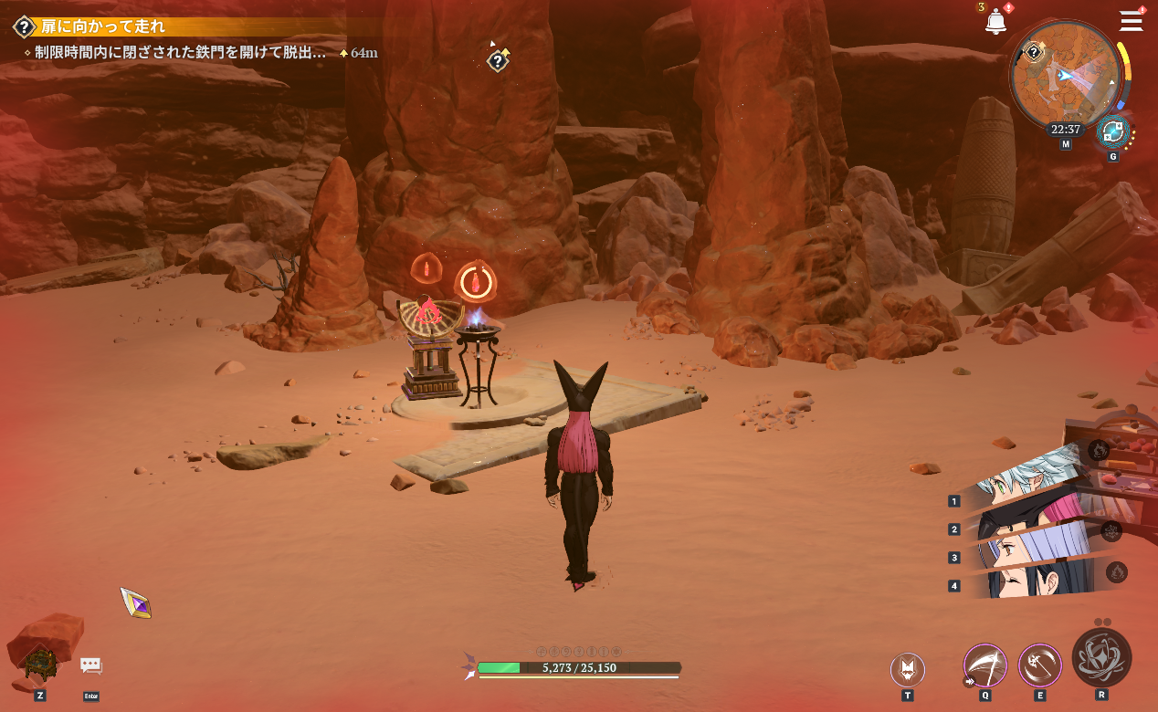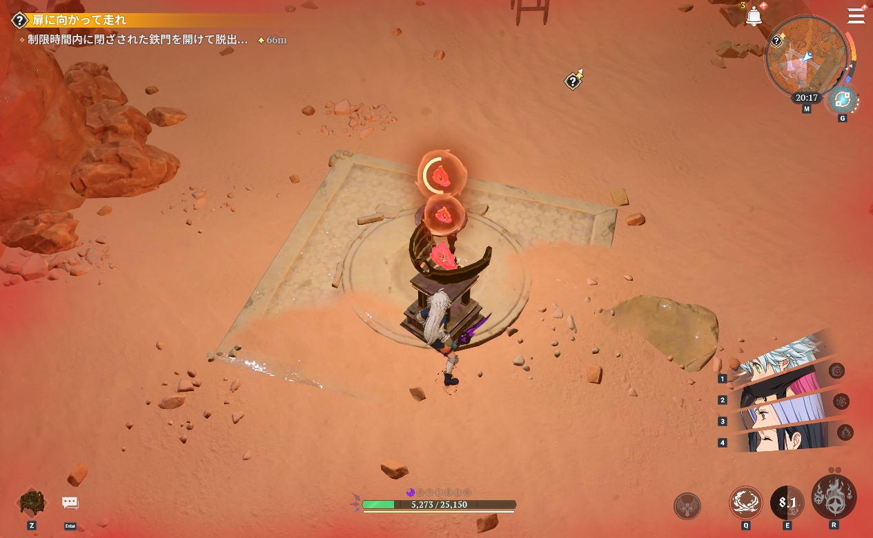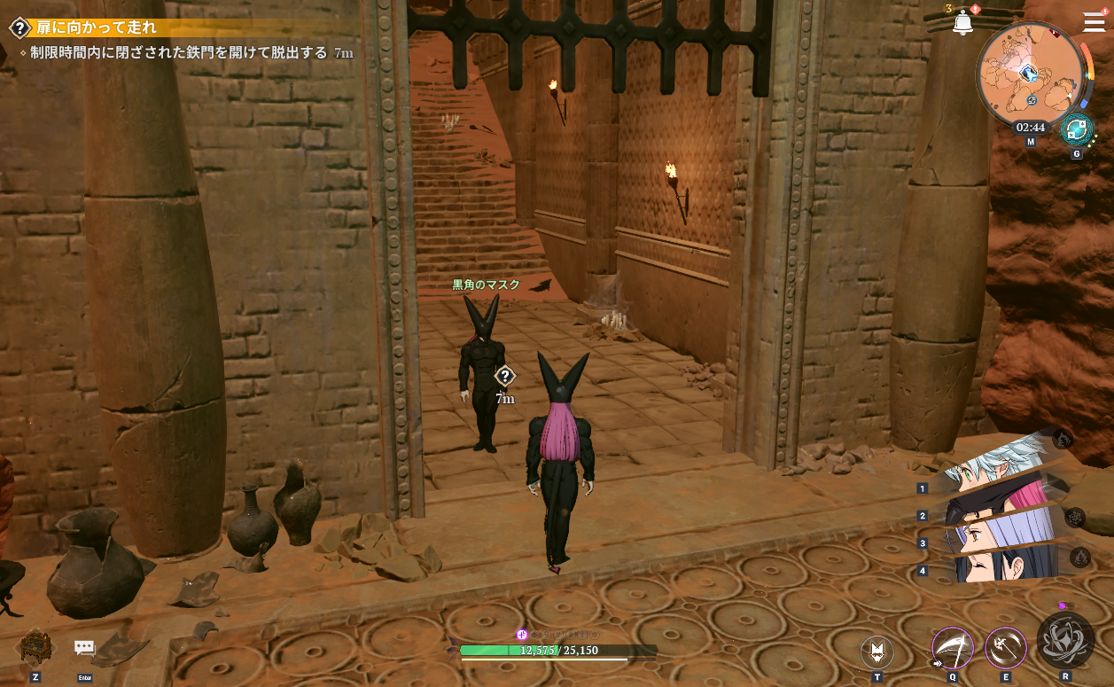 七つの大罪Origin(ナナオリ)沈黙の砂漠の扉に向かって走れ「制限時間以内に閉ざされた鉄門を開けて脱出」をSRバグを使って簡単に攻略する方法です。バグはこのクエストをクリア後に仲間になるので、ガチャで入手している人限定の攻略方法です。