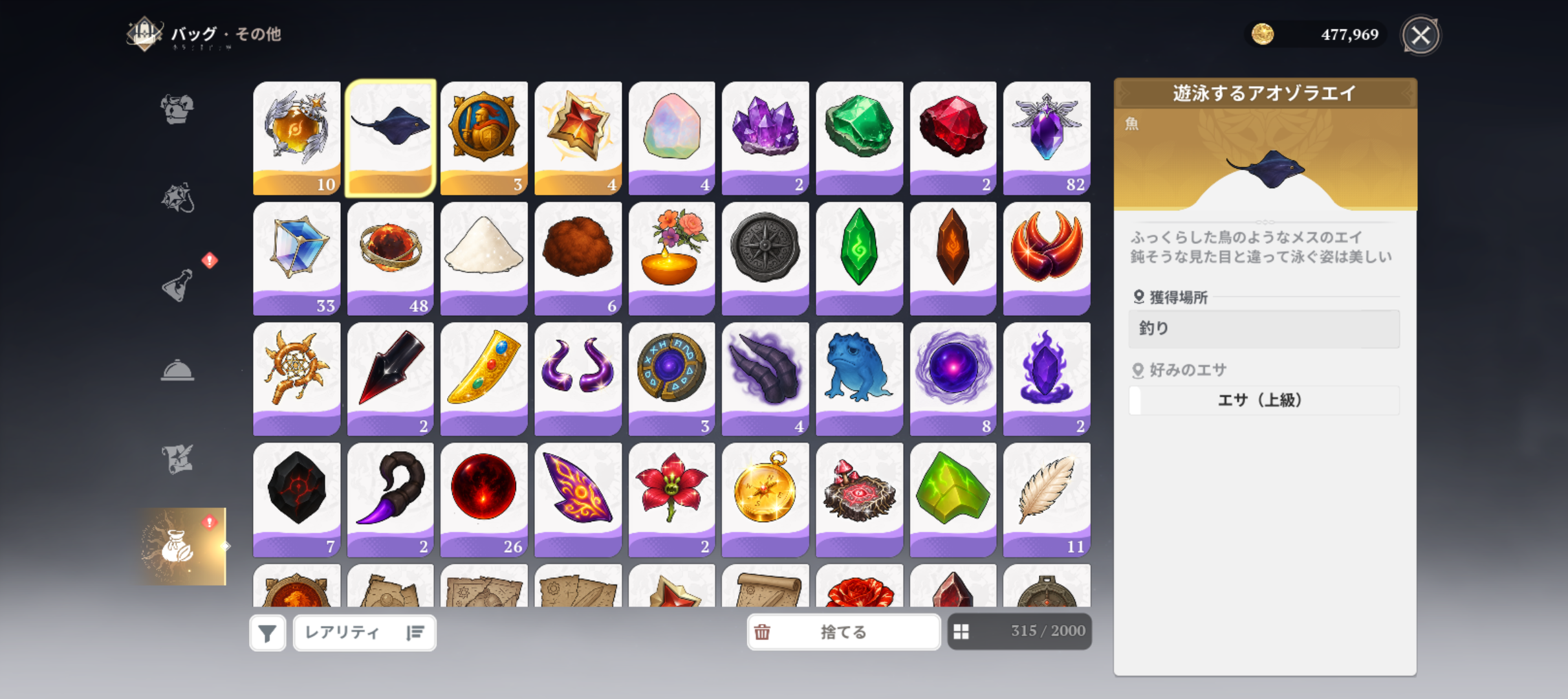 普通の残飯×3になったので、もう一度釣りに行ったのは内緒。遊泳するアオゾラエイは、料理せずにそのままホークに食べさせましょう。