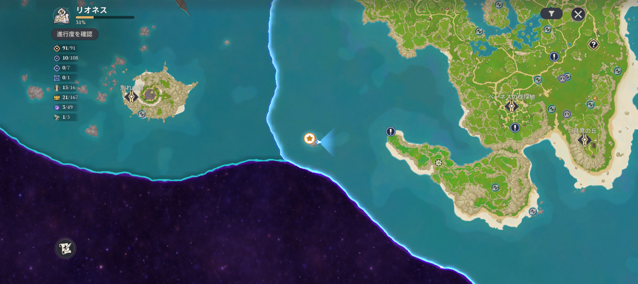 他の場所でも釣れるかもしれませんが、リオネスの南側のワープポイント「ペーネスの伐採地」からさらに進んだ島で釣れました。