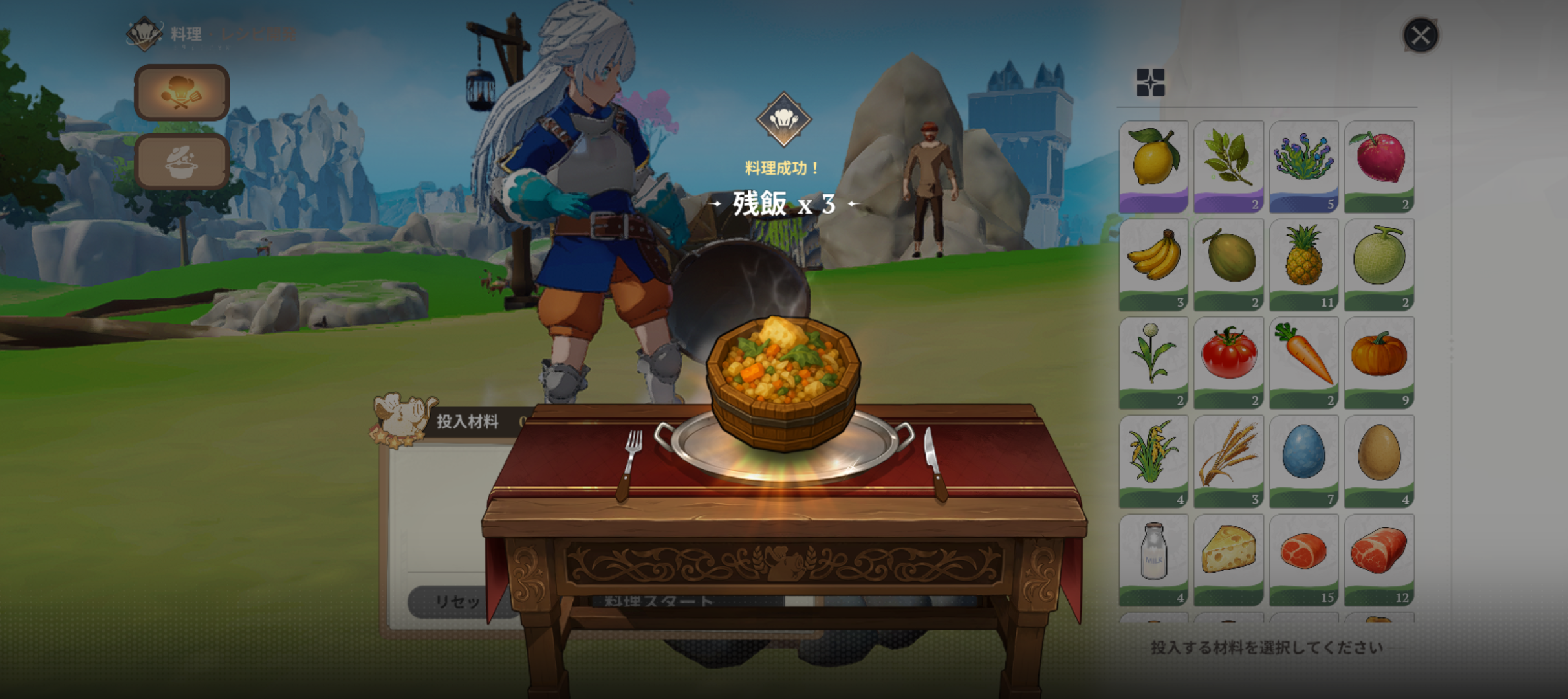 | エサ(上級) | エサ(中級)×1 フィッシュオイル×2 大型獣の肉×1 |
