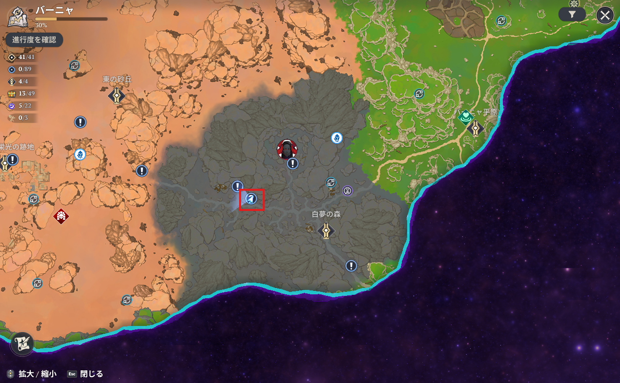 場所は白夢の森のワープポイントから西へ進んだところ。