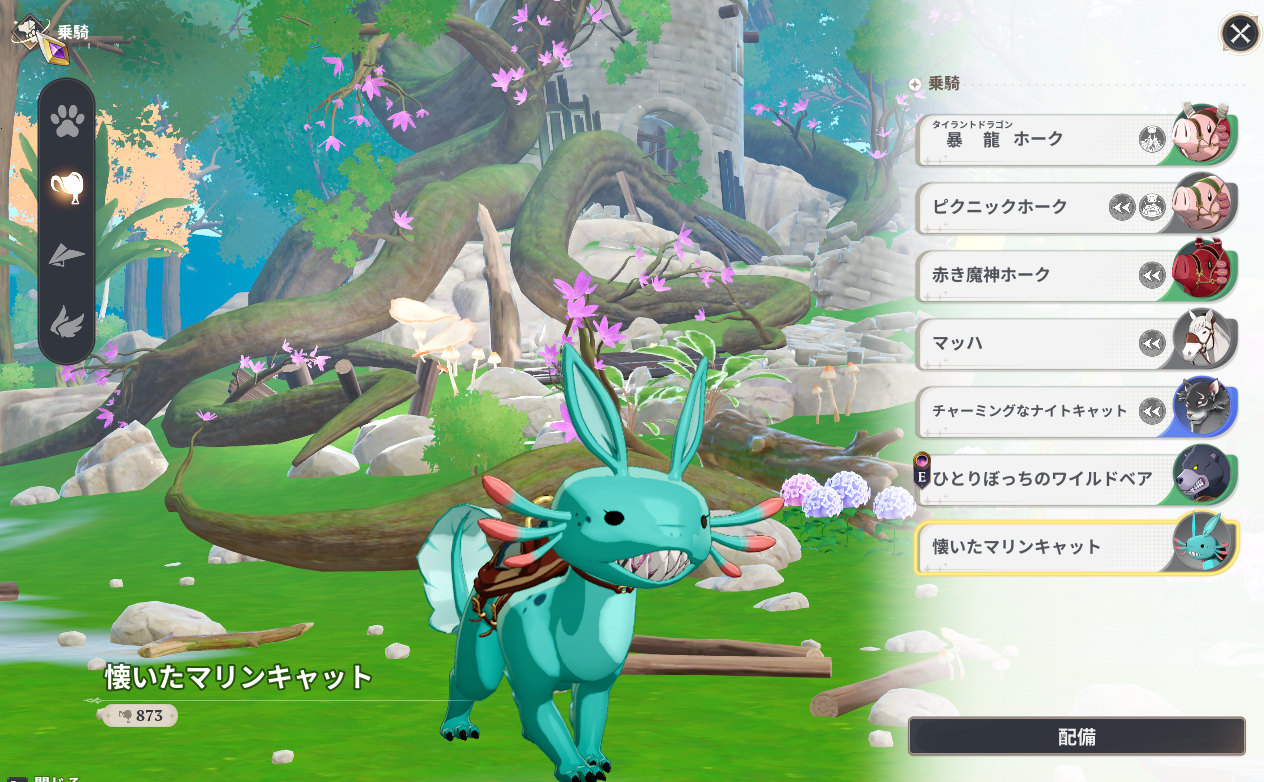 乗騎ペット「懐いたマリンキャット」は速さは微妙なところですがジャンプ力が高いので、段差などが多い箇所の移動時は良いかも…。