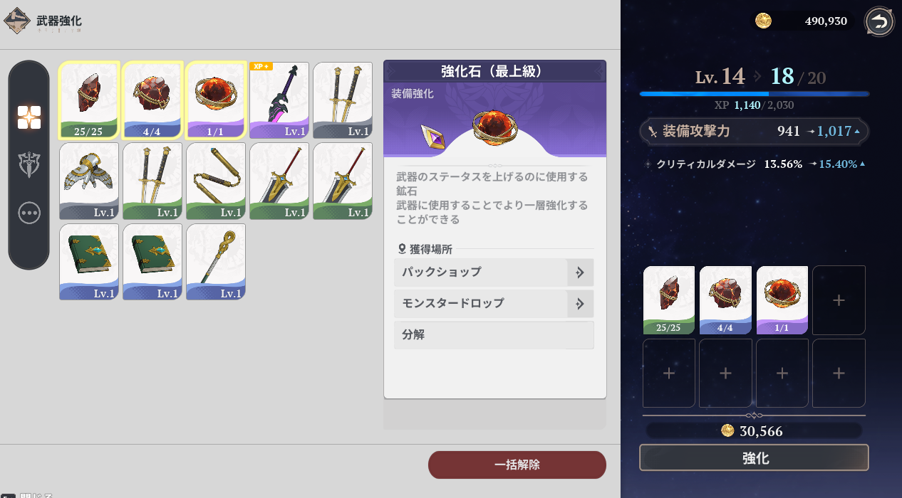 七つの大罪Origin(ナナオリ)の装備強化に必要な強化石、マスタリー強化に必要な素材を収集する場所を紹介。