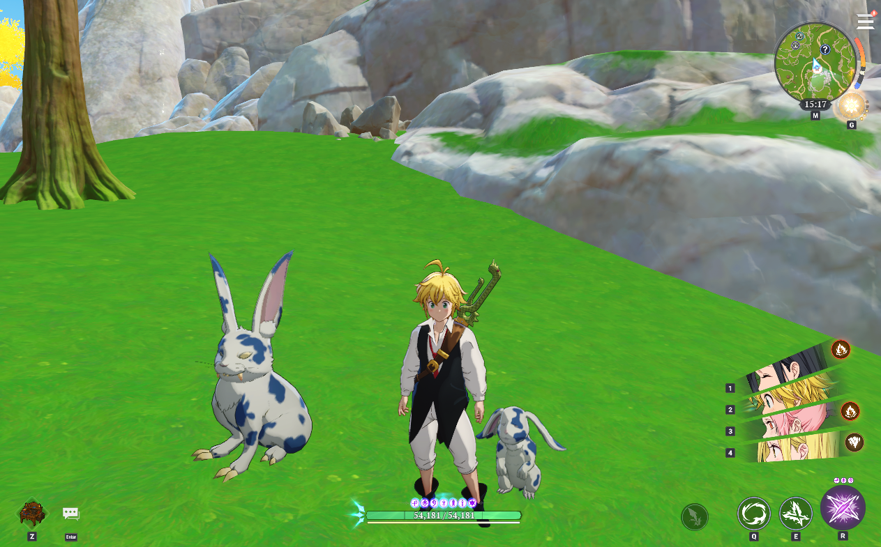 七つの大罪Origin(ナナオリ)、リオネスのウェアベアの野営地近くで「八つ裂きウサギ」改めペット「のんびりぶちウサギ」を捕獲してきました。