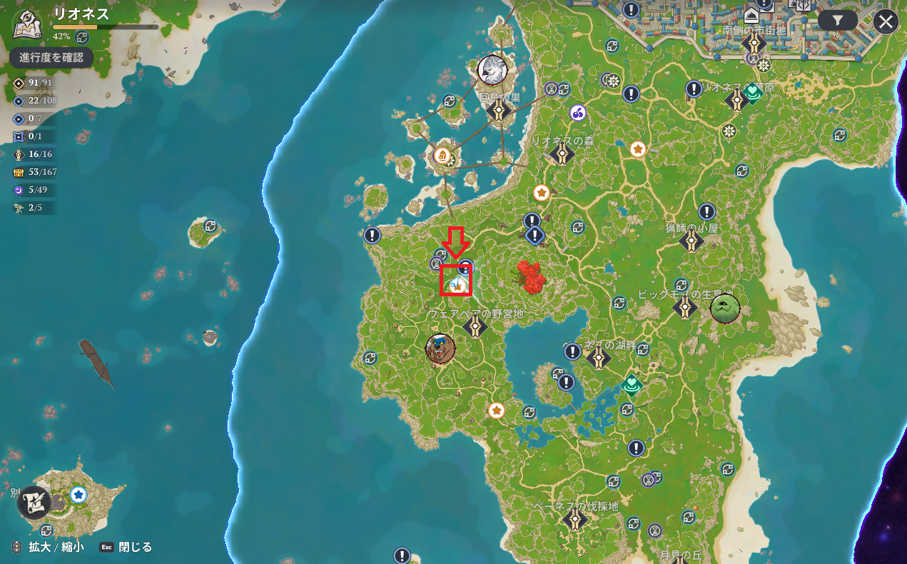 捕獲場所はウェアベアの野営地のワープポイントから北へ少し進んだところ。