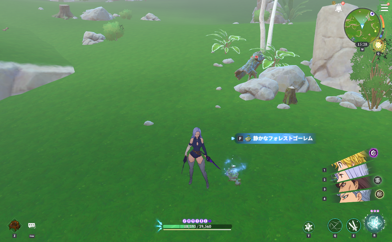 この場所はフォレストゴーレムが3体いるので、HP調整しやすく1体ずつ引き寄せる事ができれば戦闘も楽になります。