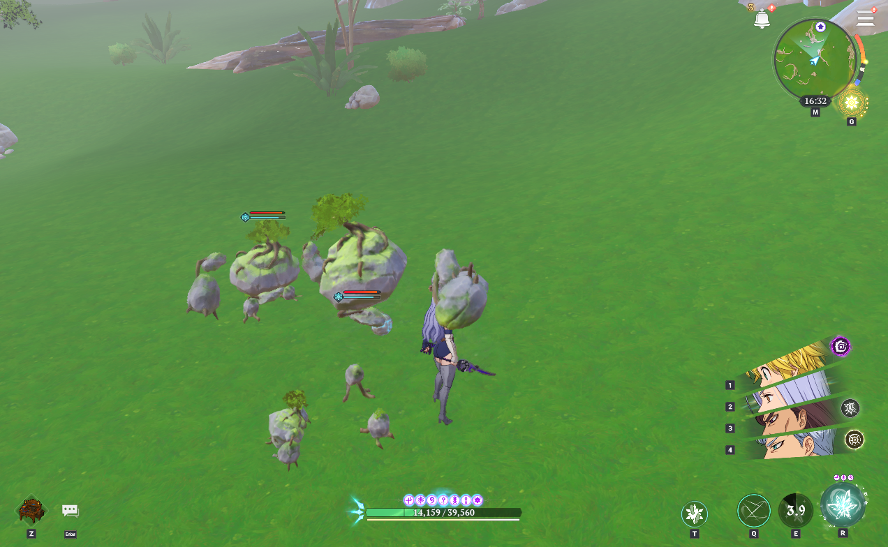 ワープポイント「ペーネスの湖畔」から南西に進んだ先、1番目の画像がこの場所です。フォレストゴーレム1体、ジャイアントゴーレムが2体でいるのでペットの捕獲は下記の場所の方がおすすめです。