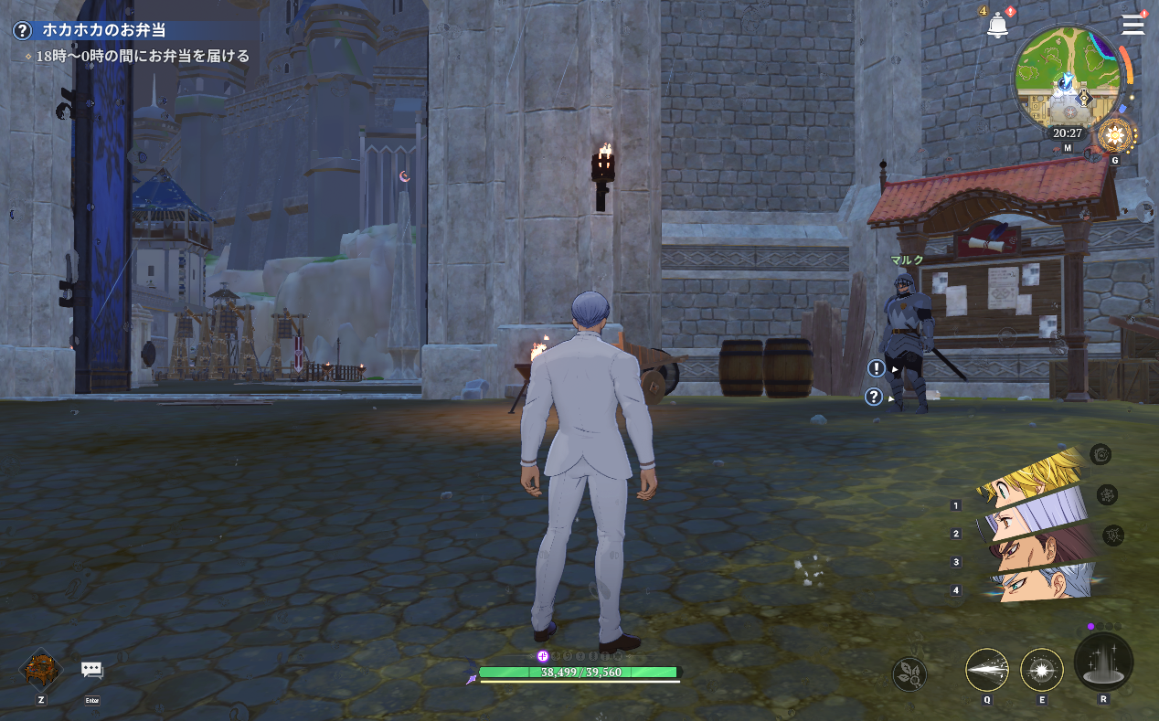息子にお弁当を届けるクエストなのですが、指定場所へ行っても息子「マルク」がいない…そしてよく見ると「18時~0時にお弁当を届ける」と書いてあります。