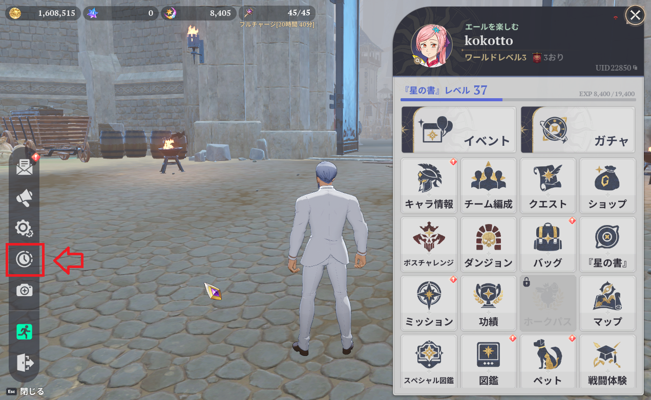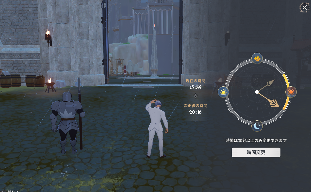 時間を待つのが面倒だったので、メニュー→時間変更アイコンから