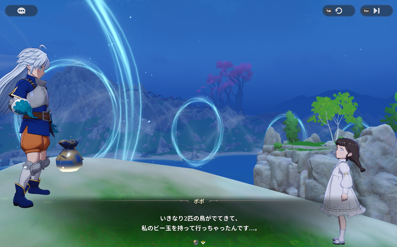 ビー玉を2つ入手したら「ポポ」に話しかけクエスト終了。少し切なさの残るクエストでした。