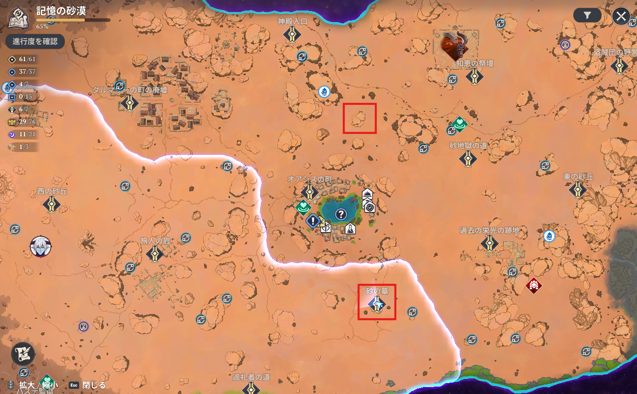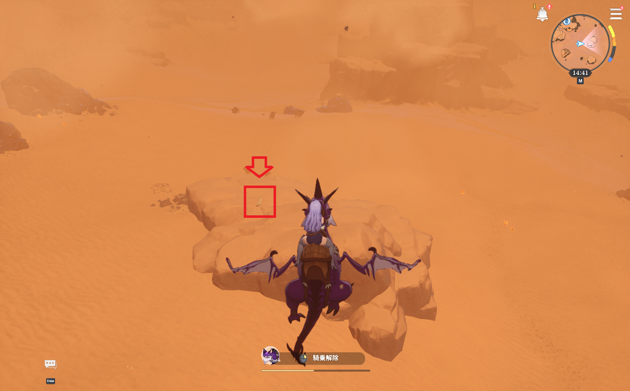 「フェネック」のいる場所はオアシスの町から北にある岩場や、ワープポイント「砂の墓」の周辺にいます。