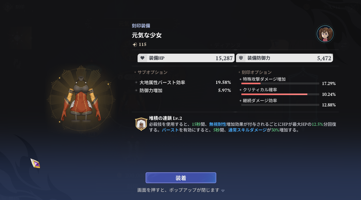 ディアンヌSSR刻印装備「元気な少女」のステータス