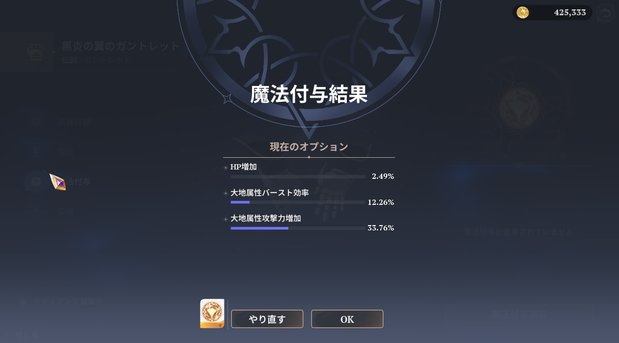 魔法付与も良い感じで大地属性バースト効率が出ました。
