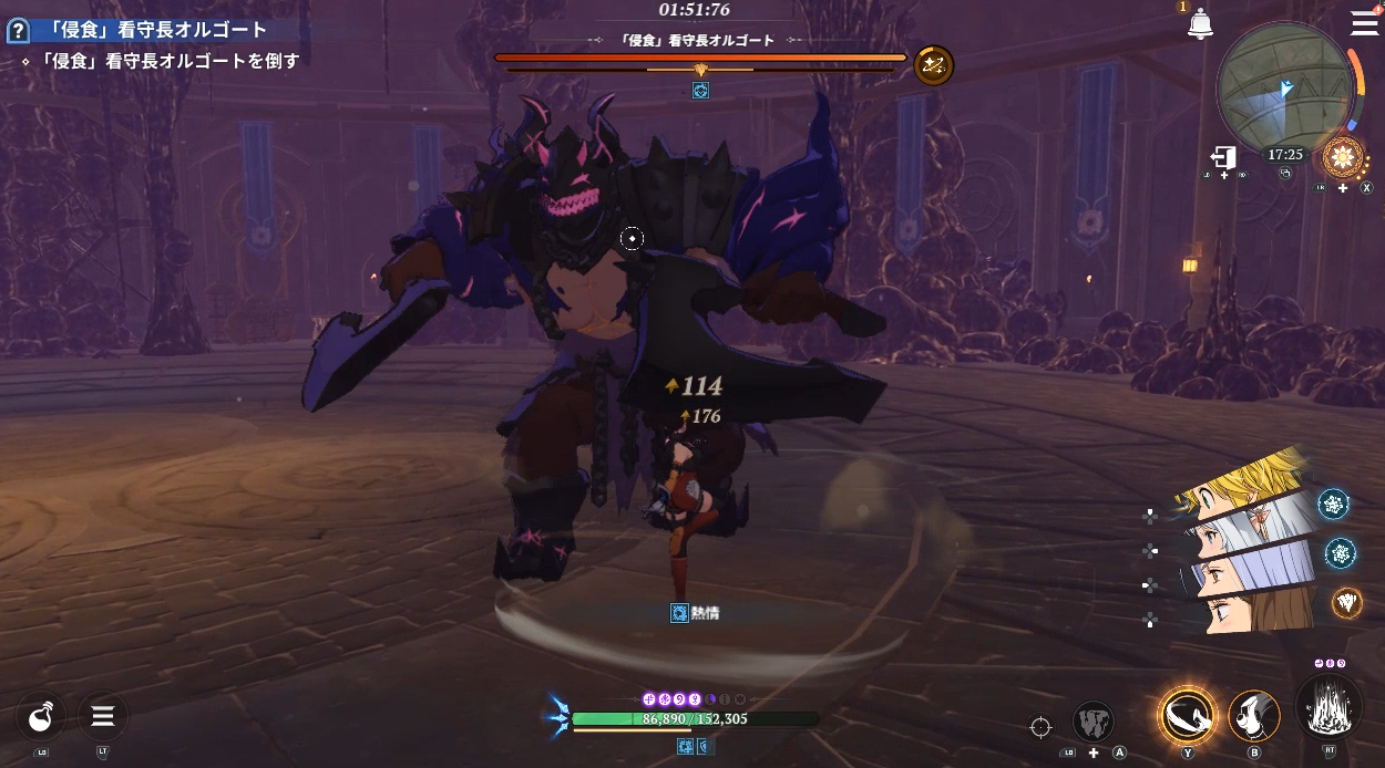 七つの大罪Origin(ナナオリ)の看守長オルゴート(アビス)にチャレンジしてみたがジェリコでは全然バーストゲージを削れない。という事でディアンヌへSSRガントレットを持たせてみる事にした。