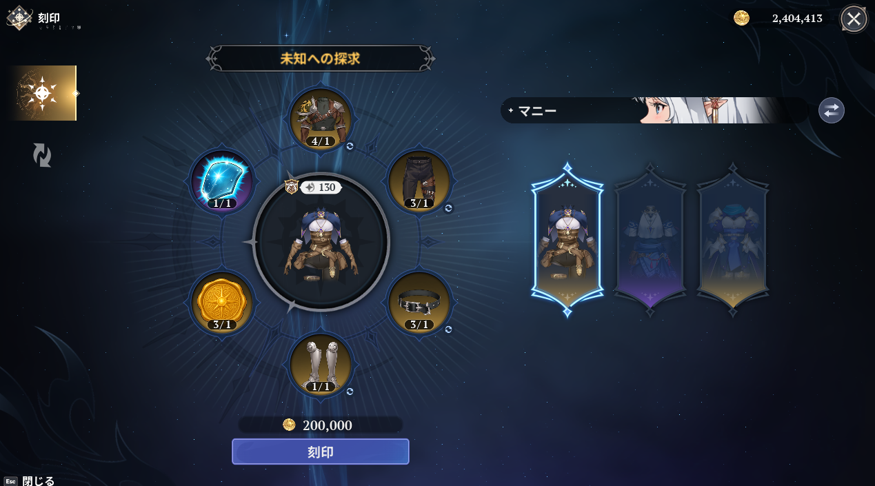 七つの大罪Origin(ナナオリ)のマニー用の刻印装備「未知への探求」を作成しました。ちょっと後悔だ。