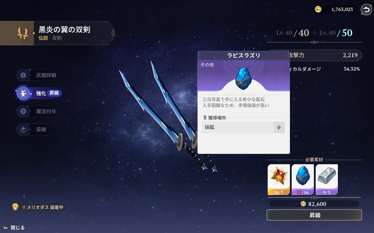1回の採鉱では強化しきれなかったので明日もラピスラズリ採鉱に行かなければ。