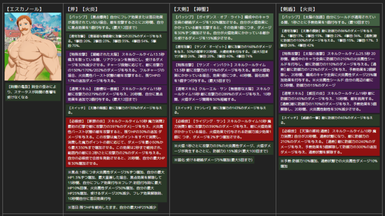 ナナオリ全キャラスキル比較表【七つの大罪Origin】