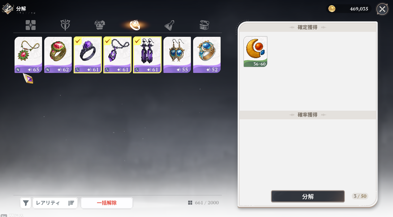 まずはSR星の守護者アクセサリー3セットを作成する