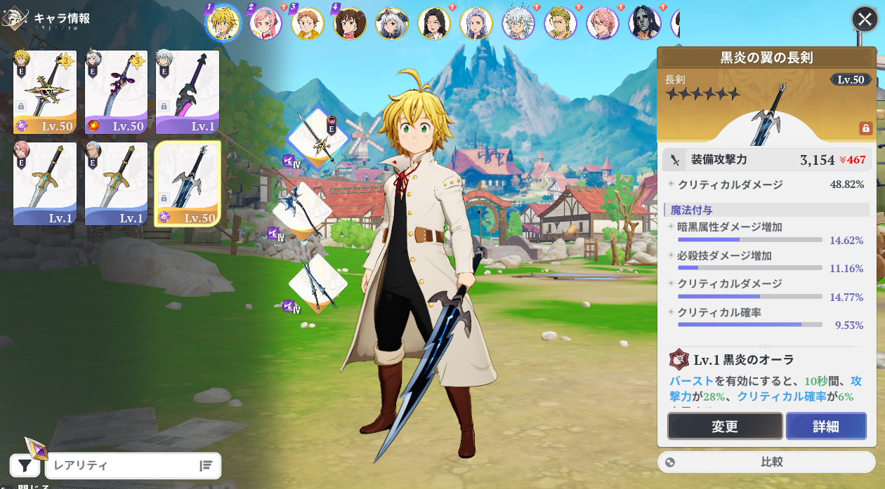 七つの大罪Origin(ナナオリ)のメリオダス用SSR武器である「魂の貪食の長剣」よりも黒炎の翼の長剣が強いらしいという噂があったので検証してみた。嘘だろ?嘘だよな?