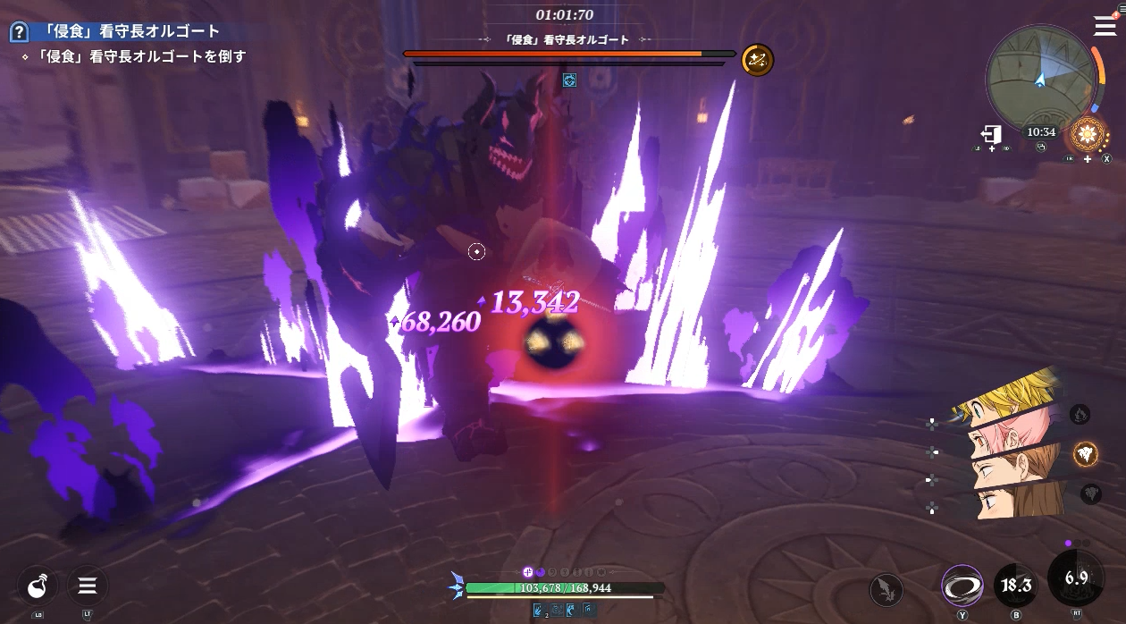 オルゴートのアビスでチェック。ディアンヌでバーストして他キャラは使わずにメリオダスで攻撃してみる。
