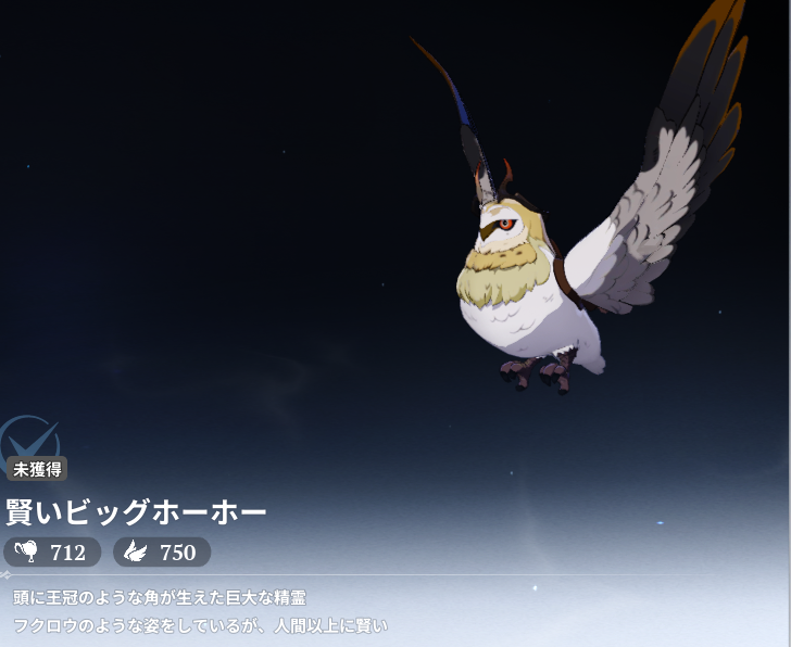 頭に王冠のような角が生えた巨大な精霊 フクロウのような姿をしているが、人間以上に賢い