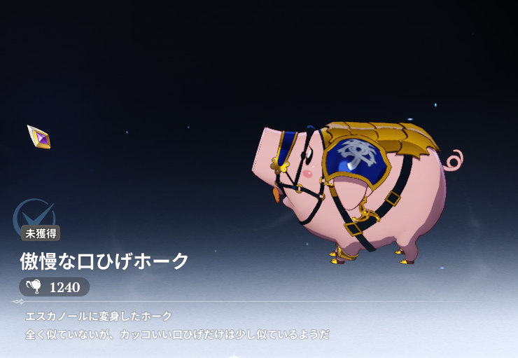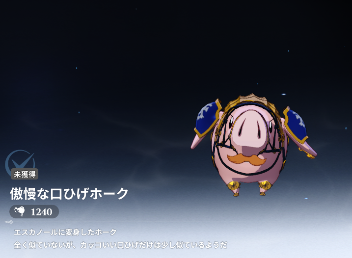 ログインボーナス7日目で入手可能な傲慢な口ひげホーク。説明文見て笑ってしまった。