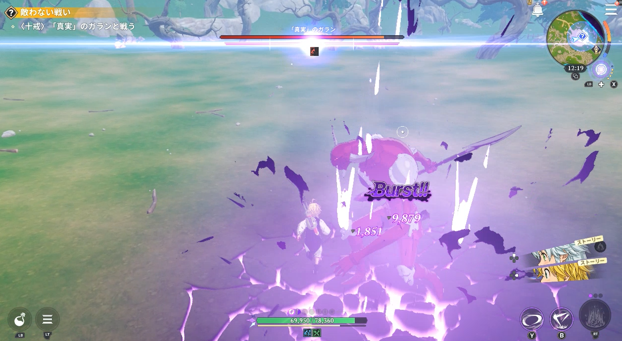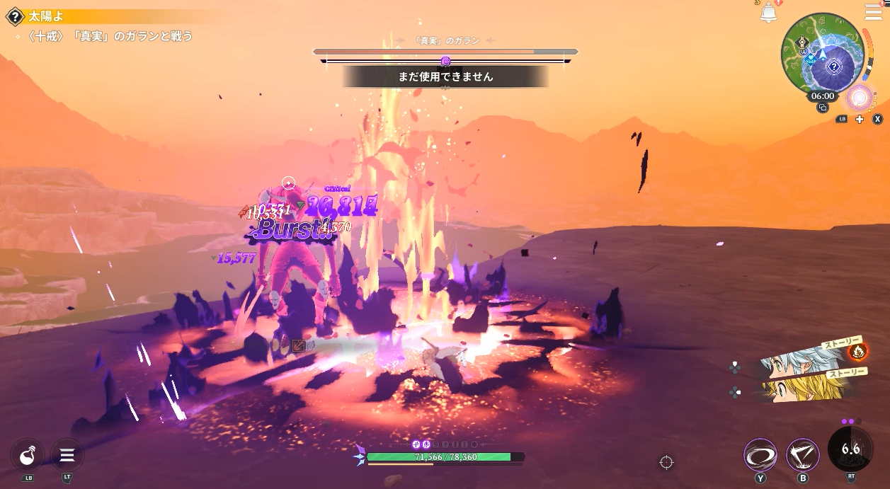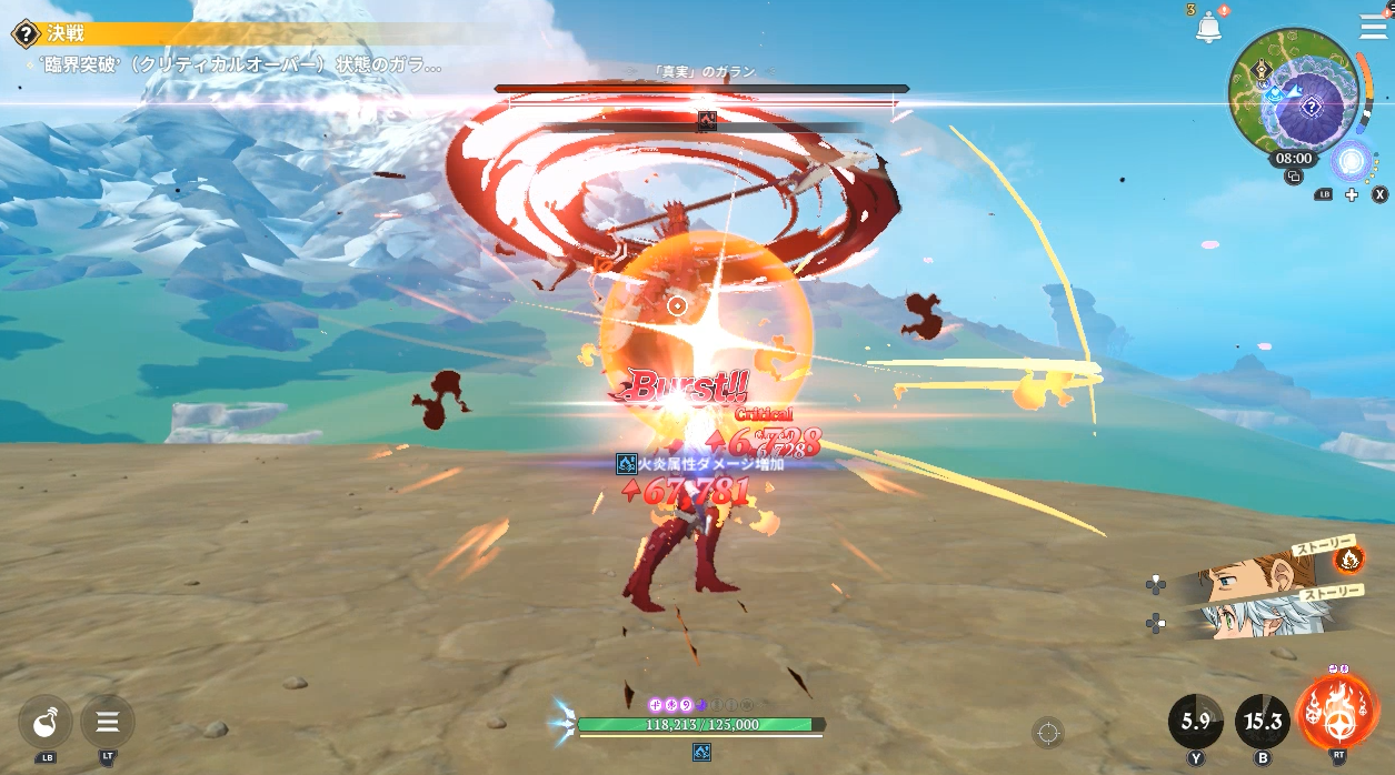 バーストしたらメリオダスへスイッチして暗黒属性バーストへ切り替えて削るのがオススメです。メリオダスの特殊攻撃はバースト中は連発する事ができます。必殺技はバーストを解除するのでギリギリで使うと良いでしょう。