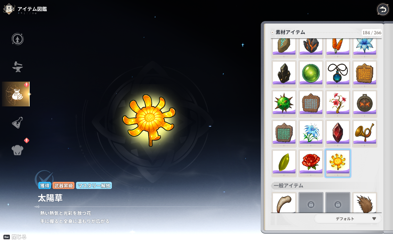 太陽草、サンストーンは、1.2バージョンアップで追加された新エリア「〈麗しき暴食〉亭」で採集、採鉱できる新素材です。ミッションを達成すると煌めくゴールドトークンを獲得できます。新エリア探索ついでに採集、採鉱しておきましょう。