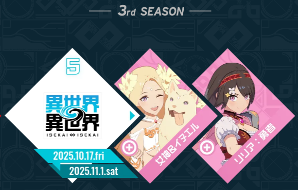 異世界∞異世界(いせいせ)では2025年10月17日(金曜)から「オリジナルキャラクター新衣装登場記