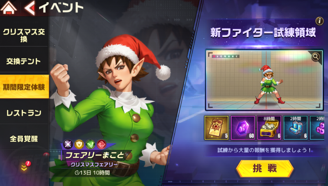 | 【コンボ②】気分屋の妖精【強化】 | 眠り始めて、3秒間の無敵とスーパーアーマー状態となり、回避率が大幅にアップする。さらに3秒間で最大HPの20%分を回復する。味方のクリスマスルーフアスとサンタブランカも同じ効果を得する。 |