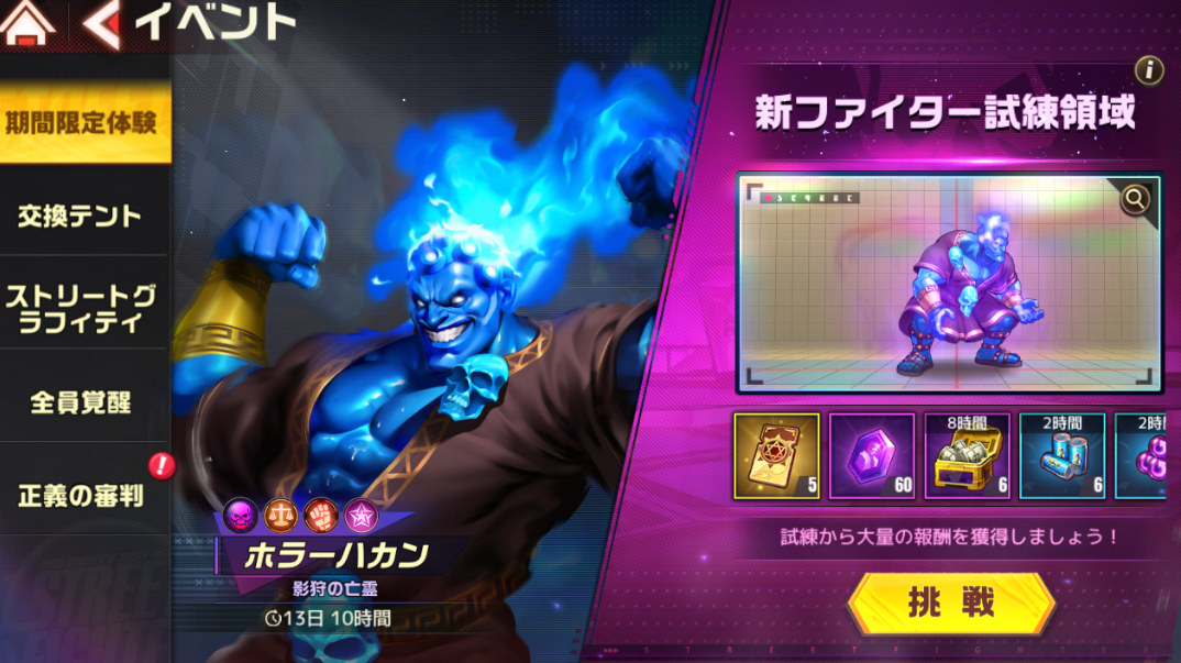 12月9日開始、ストリートファイターデュエル(ストD)の新ファイター試練領域「ホラーハカン」のクリア編成の紹介です。