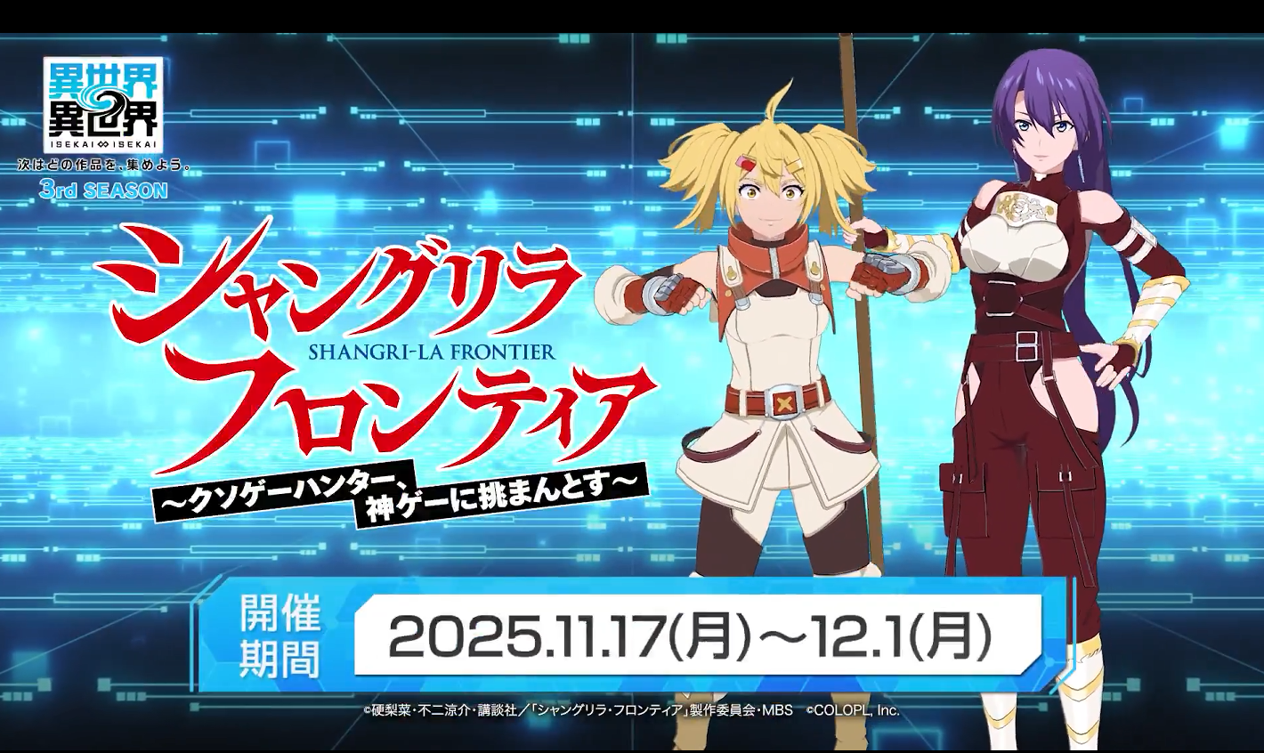 2025年11月17日から開始の異世界∞異世界×シャングリラ・フロンティアの新情報です。今回はオイカ